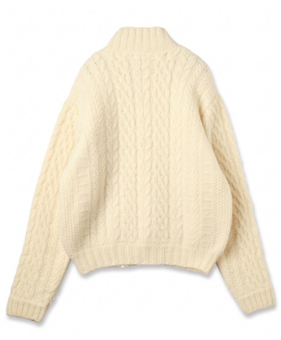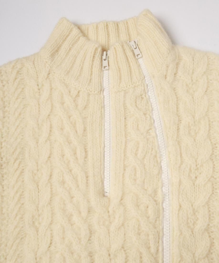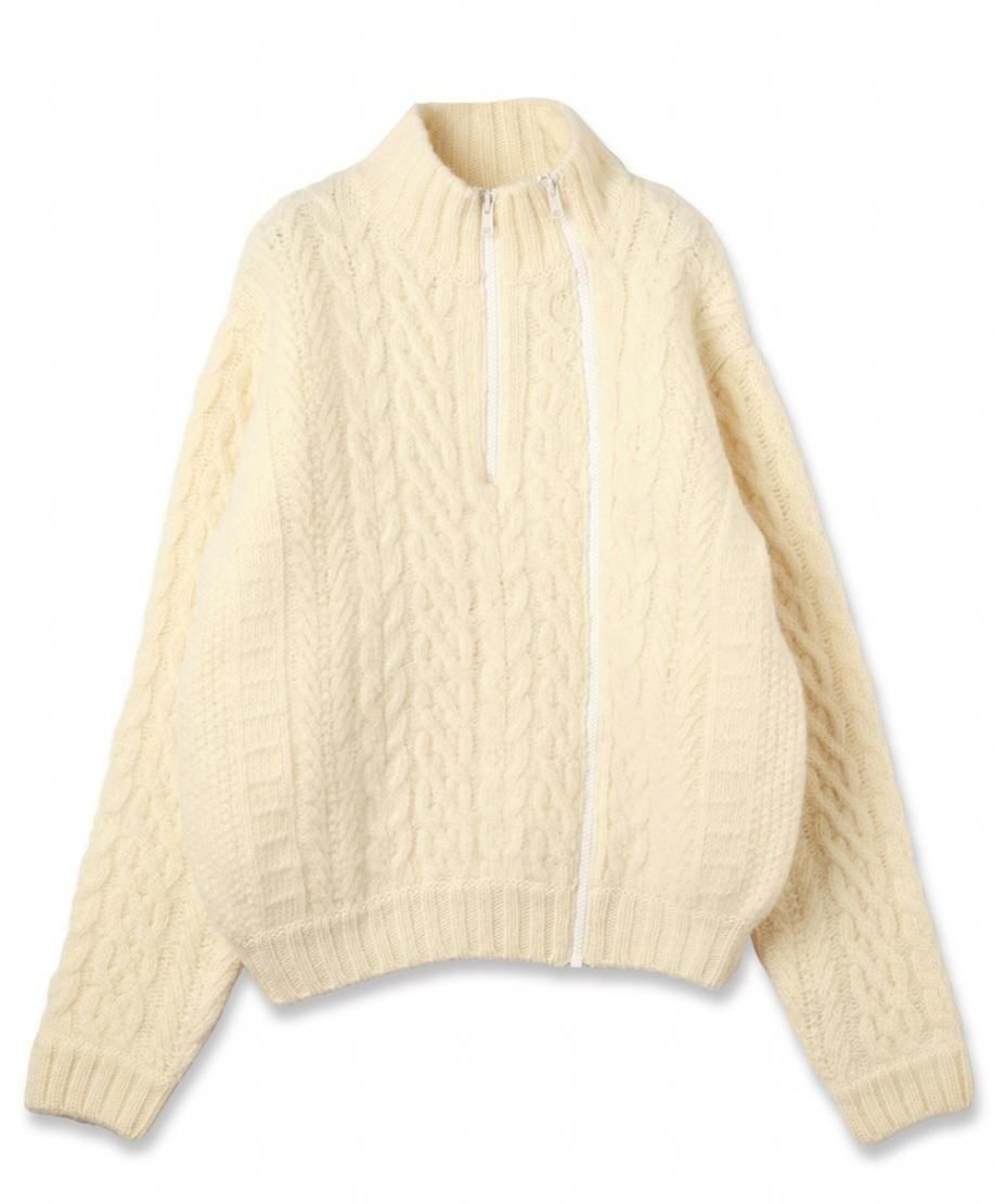 高級感のあるケーブルニットにジッパーで遊んだ一品