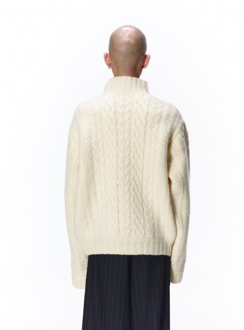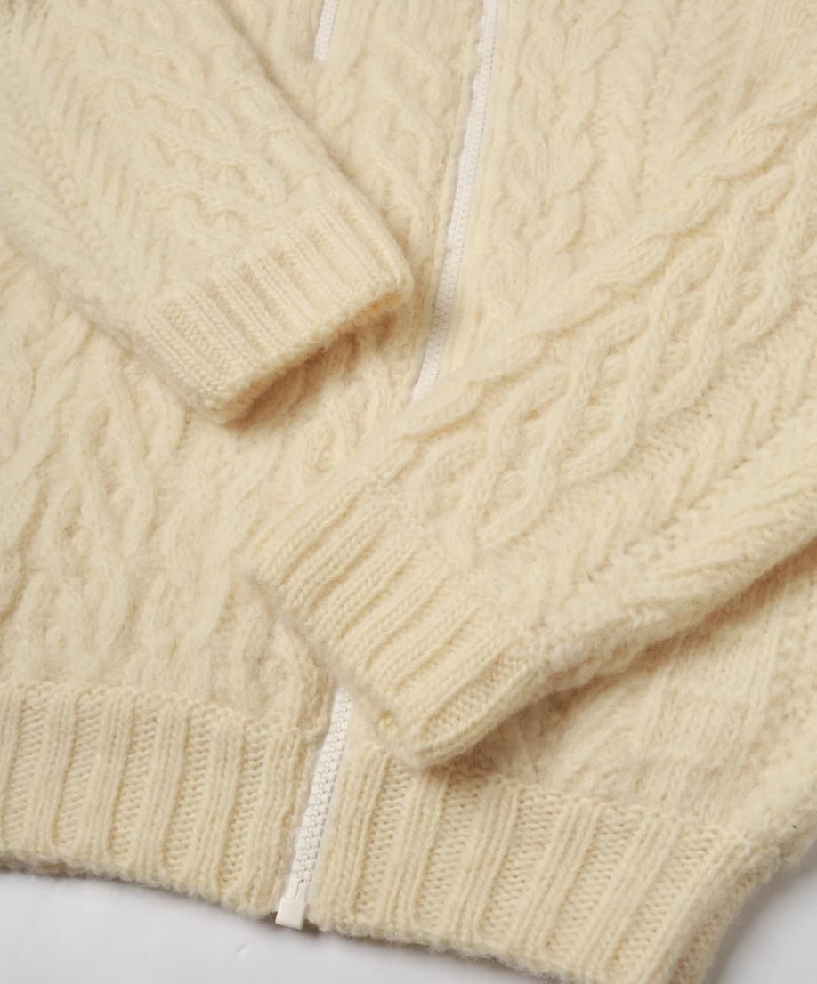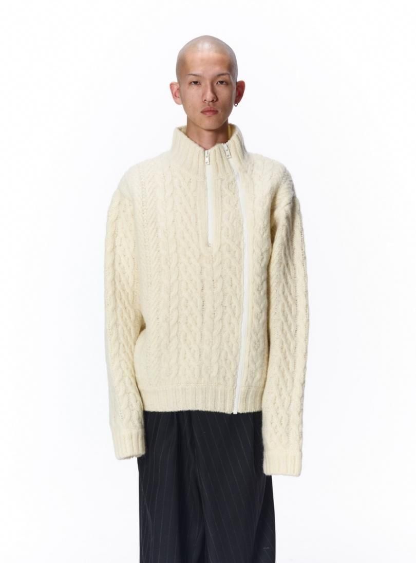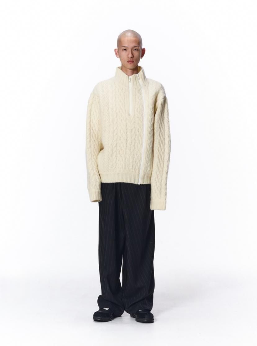 高級感のあるケーブルニットにジッパーで遊んだ一品