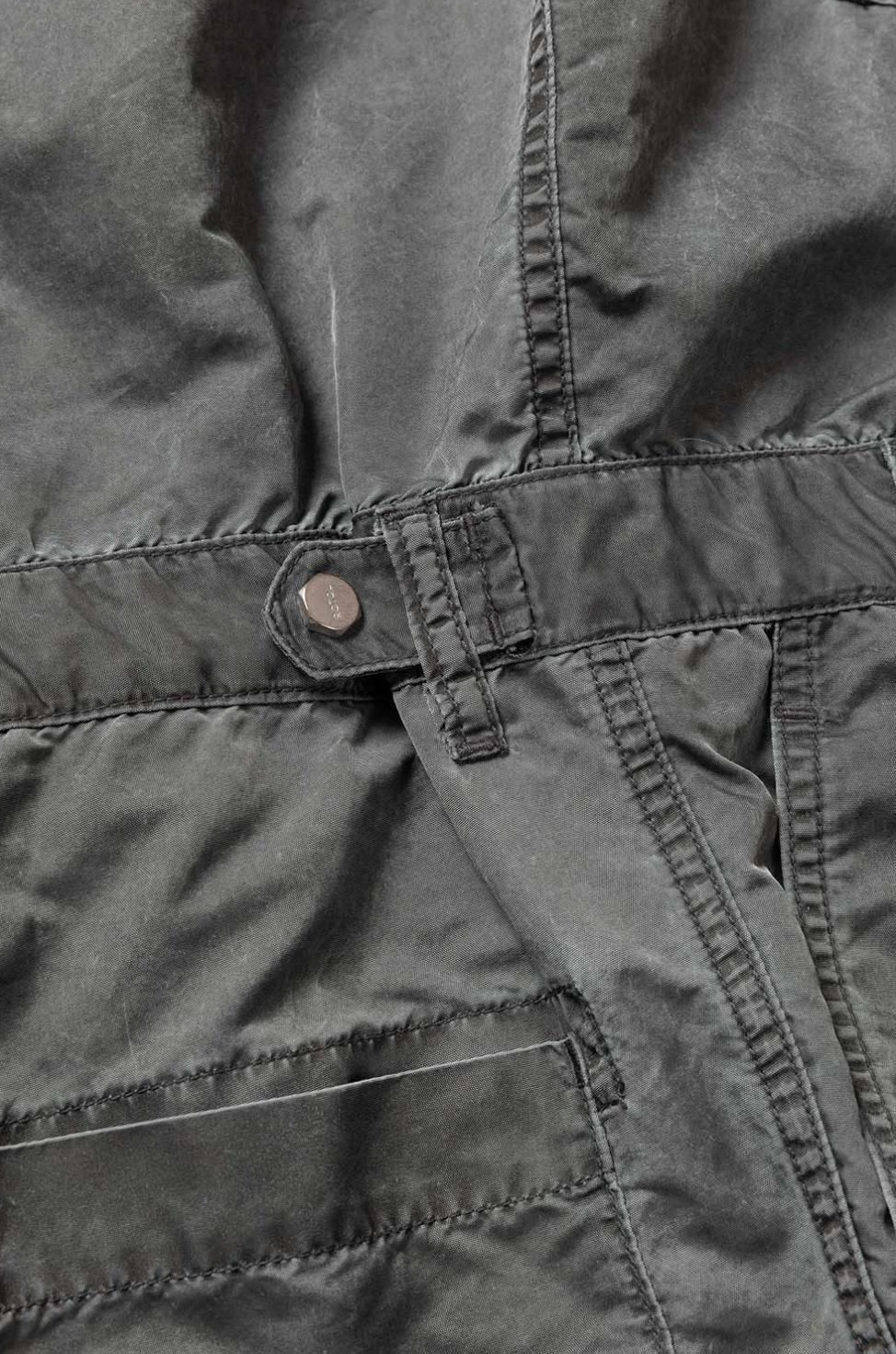 胸にはフラップポケットを配し、ウエスト部分は2タック仕様でベルトループ付き